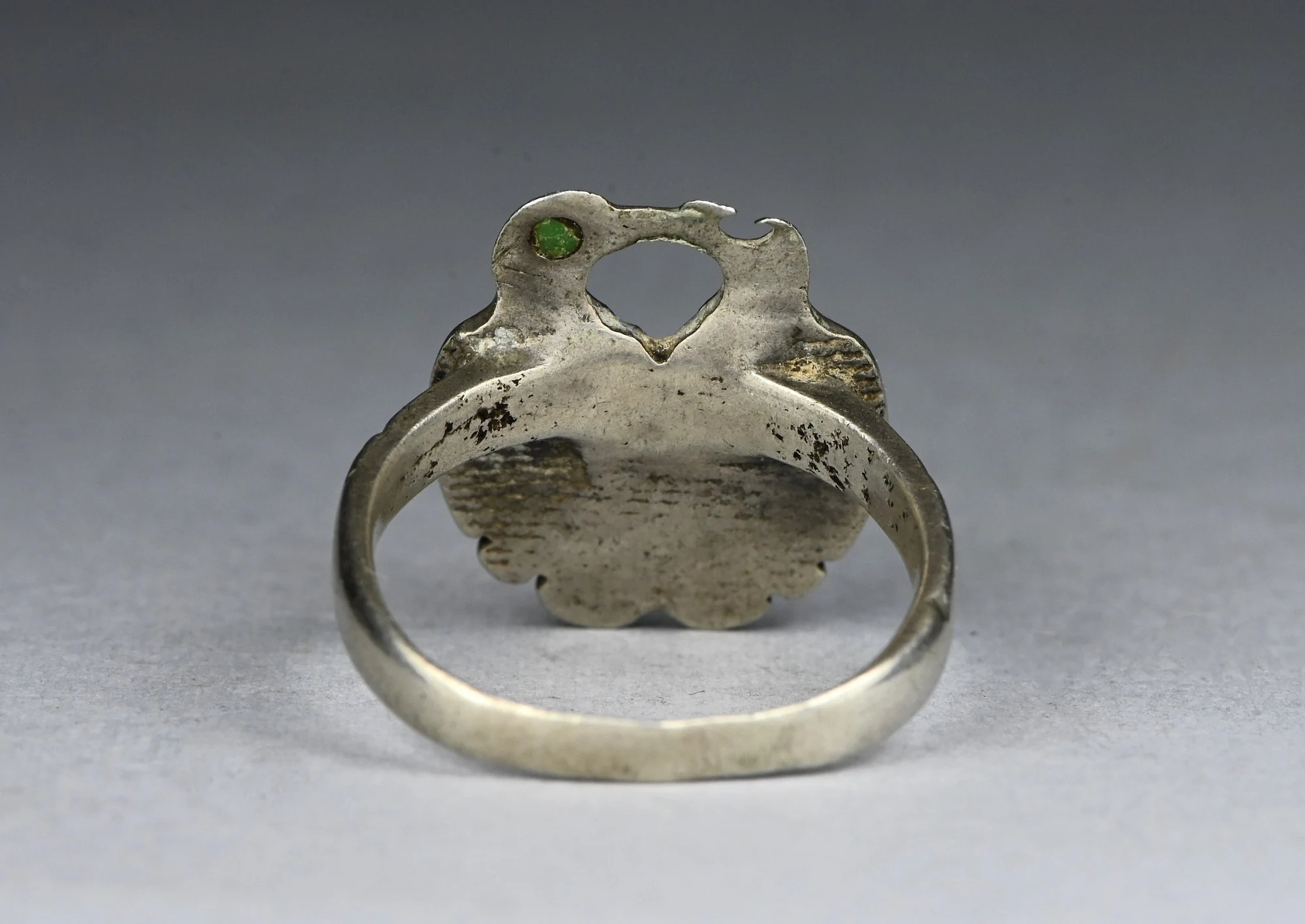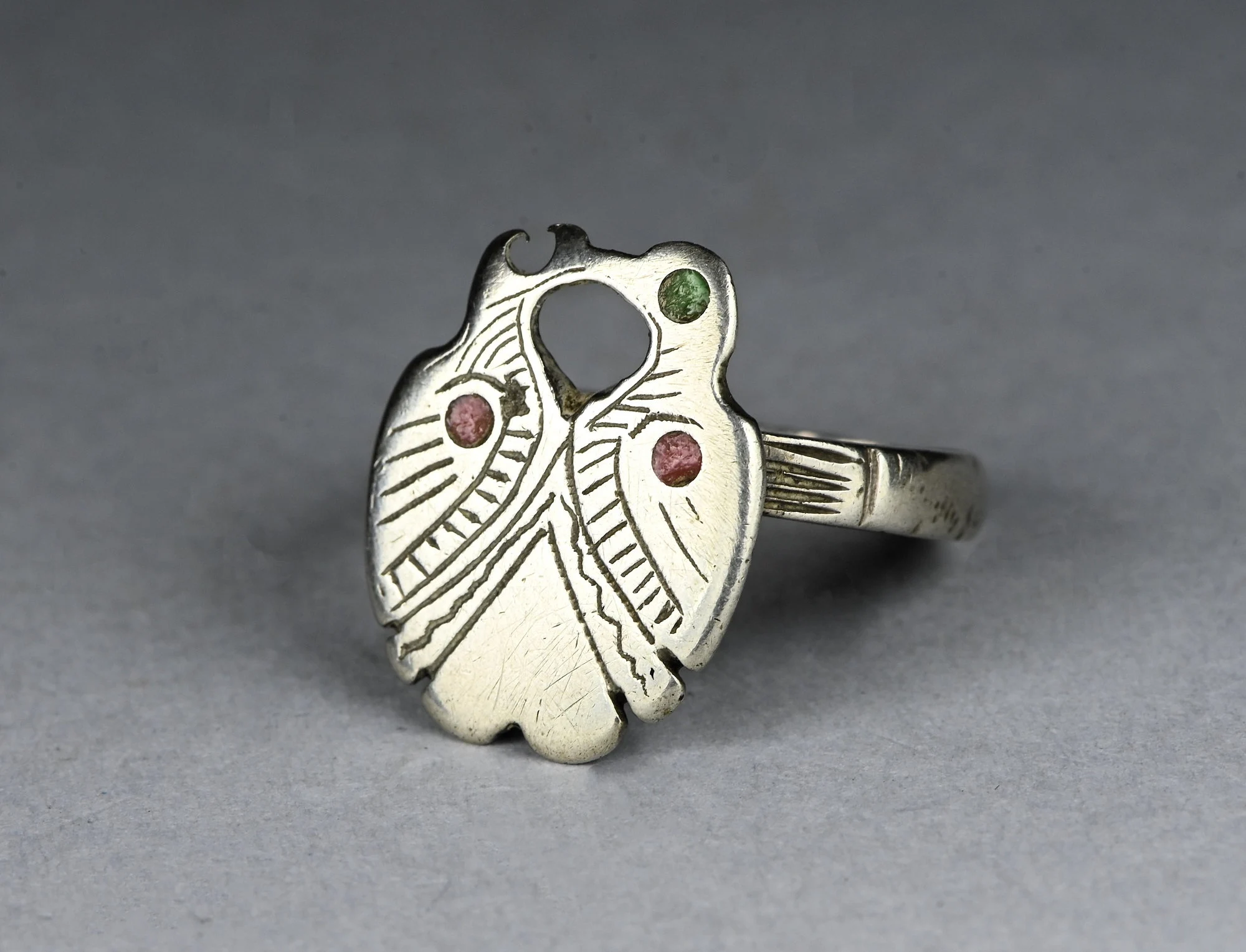 Raro anello berbero in argento con uccelli stilizzati, Marocco.