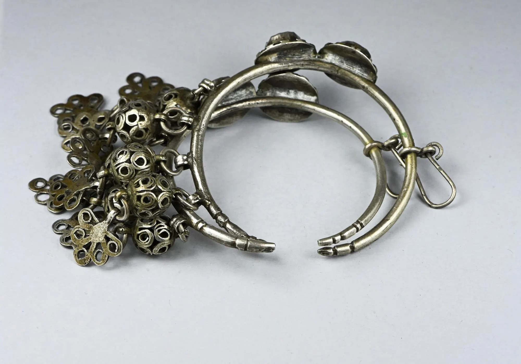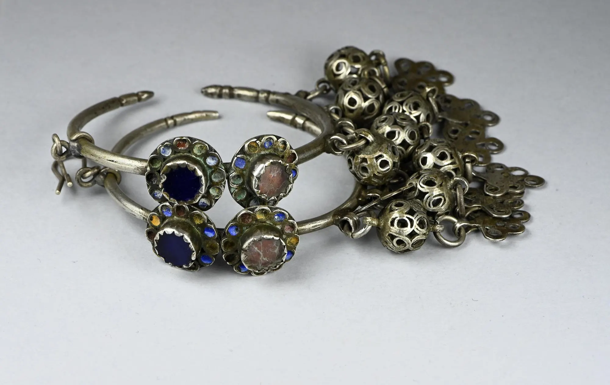 Antichi orecchini berberi a cerchio in argento provenienti dal Marocco.